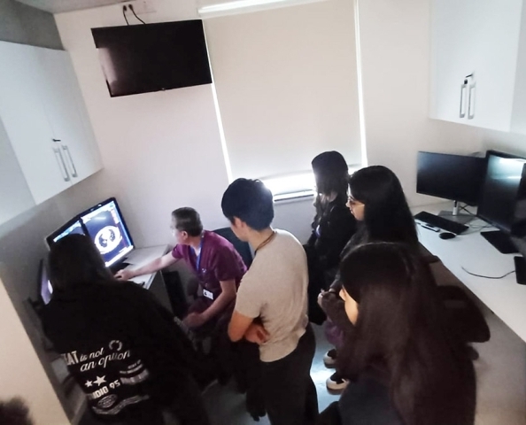 En esta actividad, las estudiantes realizaron un recorrido por la clínica, viendo sus instalaciones – CMA, Laboratorio e Imagenología – que les permitió entender el quehacer diario de los profesionales de la salud en sus propios lugares de trabajo.
